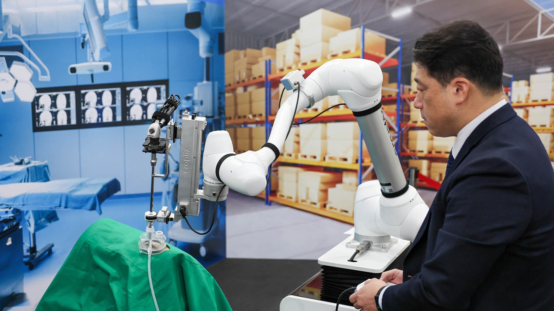이 솔루션은 3kg의 하중을 견딜 수 있고, 협동로봇 6개의 각 축에 조인트 토크 센서를 탑재해 섬세하고 정교한 작업이 가능하다. 또한 프로그래밍을 통해 수술 동선을 최적화할 수 있으며, 조이스틱으로 쉽게 상하좌우 이동, 화면 확대 및 축소가 가능하다.